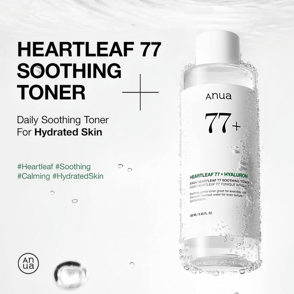 Gentle soothing toner with 77% heartleaf extract to calm sensitive skin.