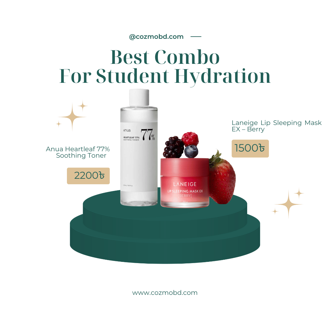 Laneige Lip Sleeping Mask Berry + Anua Heartleaf 77% Soothing Toner – Student Hydration Combo Category: Student Skincare Combo